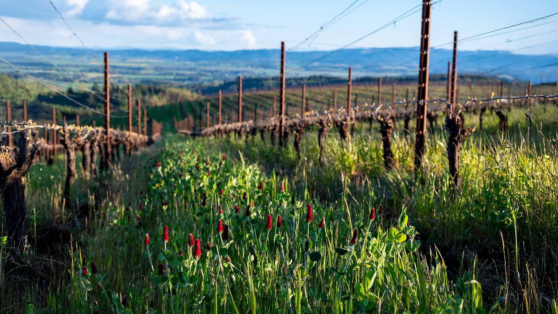Eine Begrünung im Weinberg hat viele Vorteile. Sie dient als Erosions- und Ver­dichtungs­schutz, fördert den Humus­aufbau sowie die Arten­vielfalt und damit verbunden die An­siedlung von Nütz­lingen. Durch gezielte Einsaat von Legumi­nosen (z. B. Klee, Luzerne, Erbsen, Wicken) kann Stick­stoff aus der Luft im Boden fixiert werden, welcher dann, nach Umbruch der Begrünung, den Reben zur Verfügung steht. Außerdem können Begrünungs­pflanzen eingesät werden, die über­schüssiges Nitrat aufnehmen (Roggen, Senf, Ölrettich) und über die Winter­monate speichern, bis die Rebe den Stickstoff im Früh­jahr wieder benötigt.